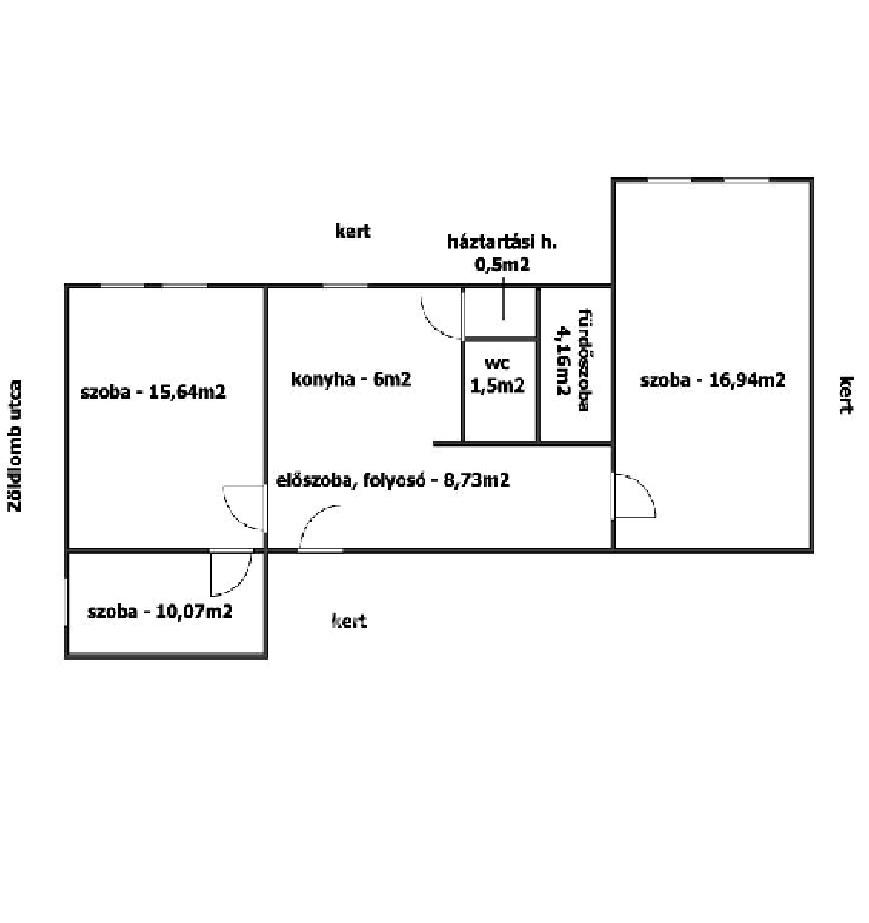 A lakás elosztása praktikus: 2 + 1 fél szoba, külön fürdő és WC, kamra, világos, jól élhető terek.